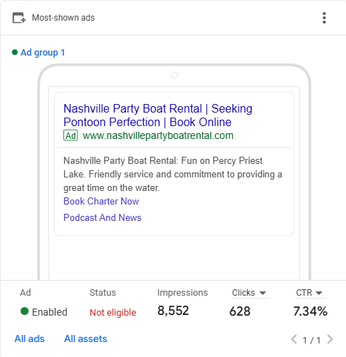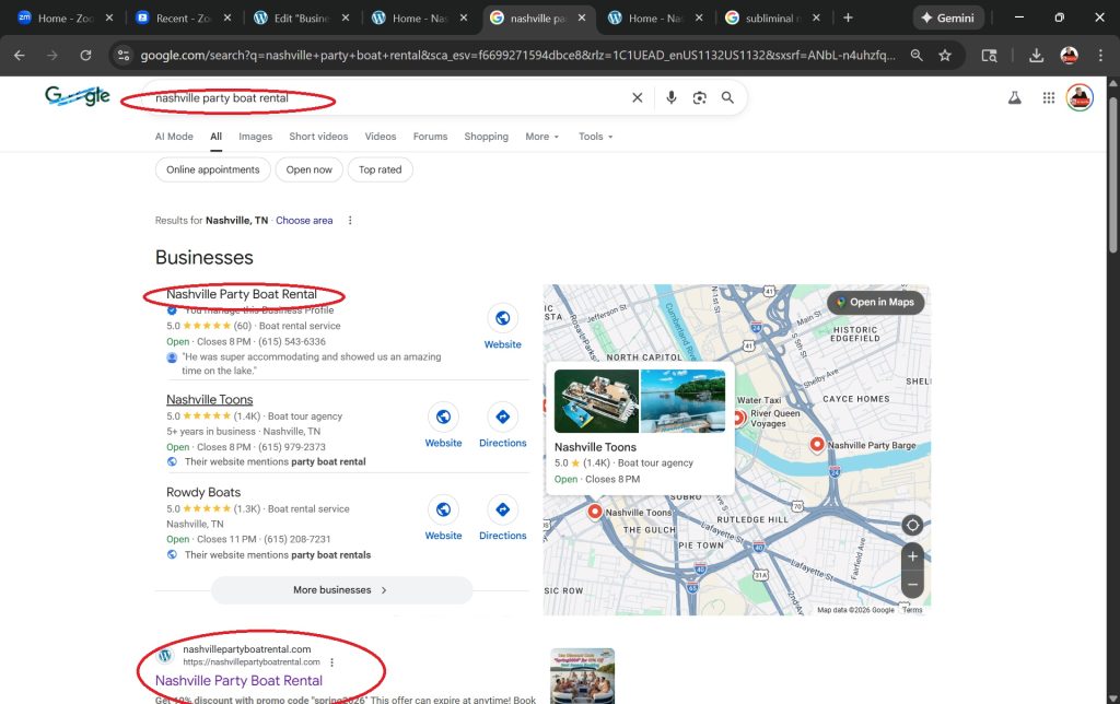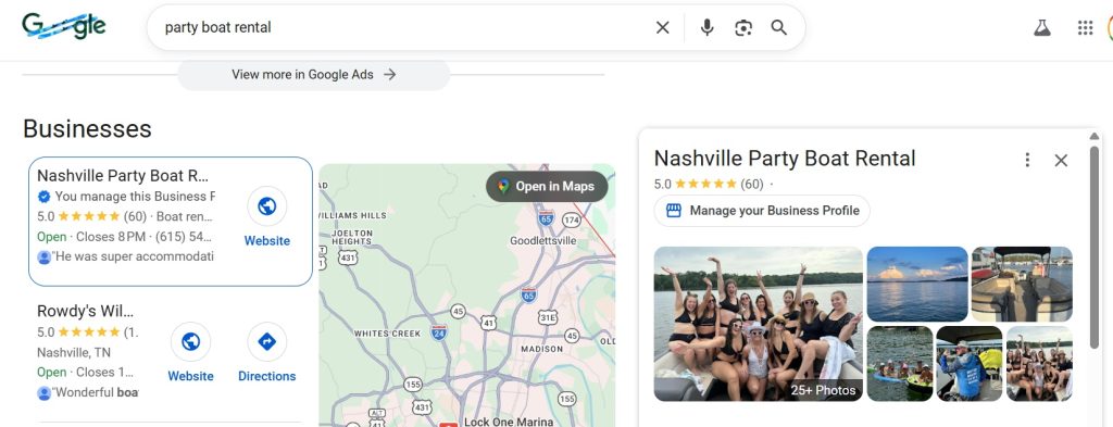 We named our business the top search terms that our potential customers search, which was Nashville Party Boat Rental.