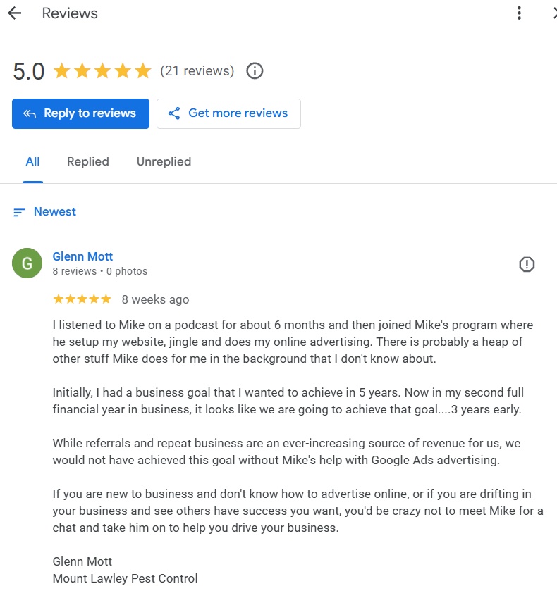 My REAL Google Review From Glenn Mott, Client Example Above